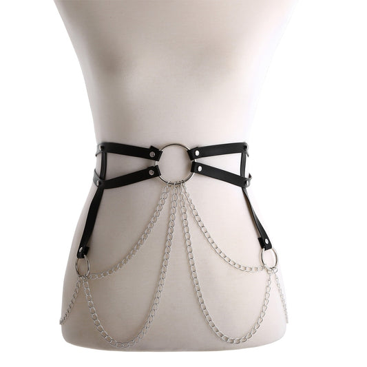 Body Harness Women Sexy Chain Belt Faux Leather Strap Waist Jewellery Festival Girls Belly Chains