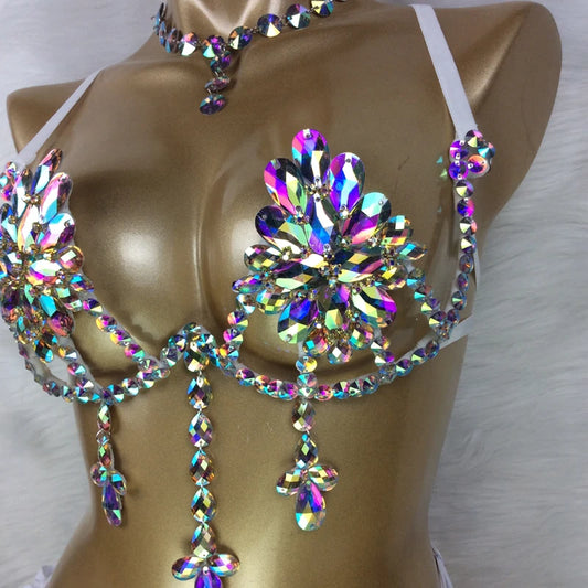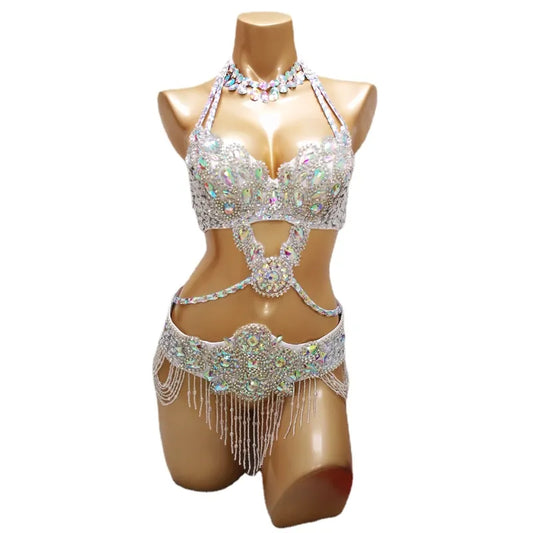 Belly Dance Wear Women Samba Carnival Bra and Belt Wear Handmade Beads Outfit