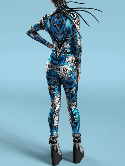 Reptilian Fractal Bodysuit - Skinny Jumpsuit Wear Onesie Doof Costume Elastic Bodysuits Rave Rompers