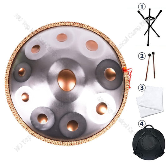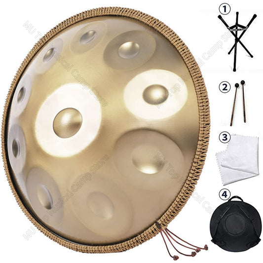 Mandala Hand Pan Drums Set Nitriding Steel 9/10 Notes 22 Inches Worry Free Drum Instrument for Beginners Percussion Hand Drum