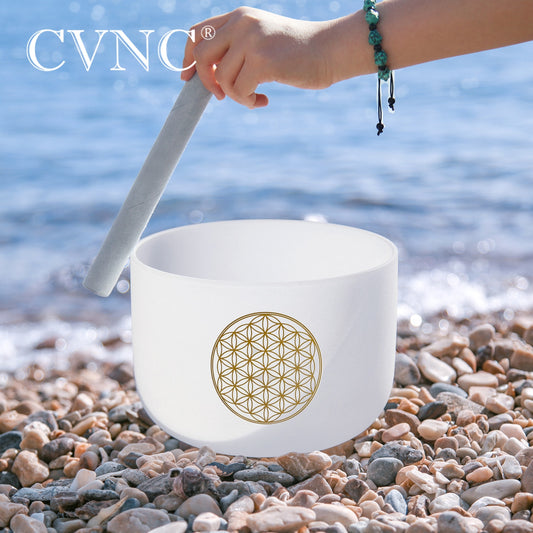 528Hz Life Flower Design 8 Inch C Note Chakra Frosted Quartz Crystal Singing Bowl with Free Mallet
