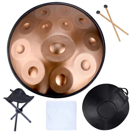 432HZ Handpan 9/10/12 notes - 22 inches steel drum instrument - Gold