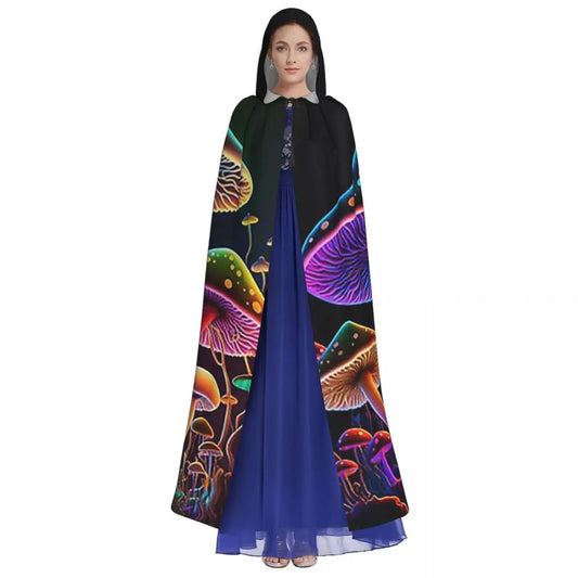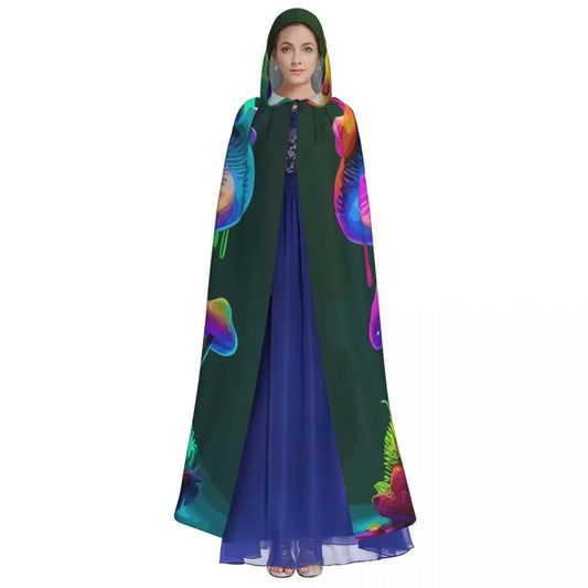 Hooded Cloak - Glowing Psychedelic Mushrooms Trippy Mushroom Witch Medieval Costume Cosplay Cape Halloween festival Adult Unisex