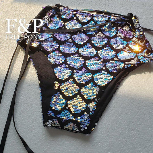 Holographic Rave Laced Up Pole Dance Shorts Burning Man Festival Sequin Bottom Carnival Mermaid Costume Gogo Wear Clothing