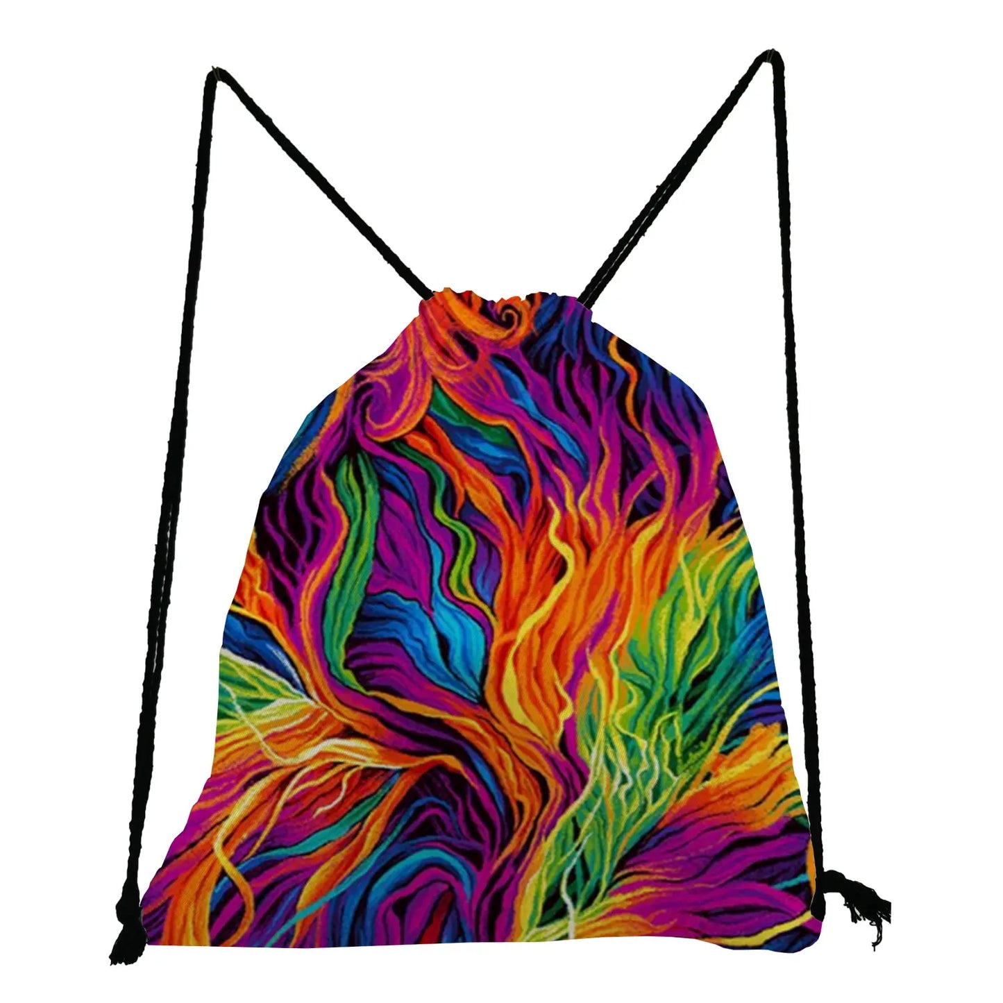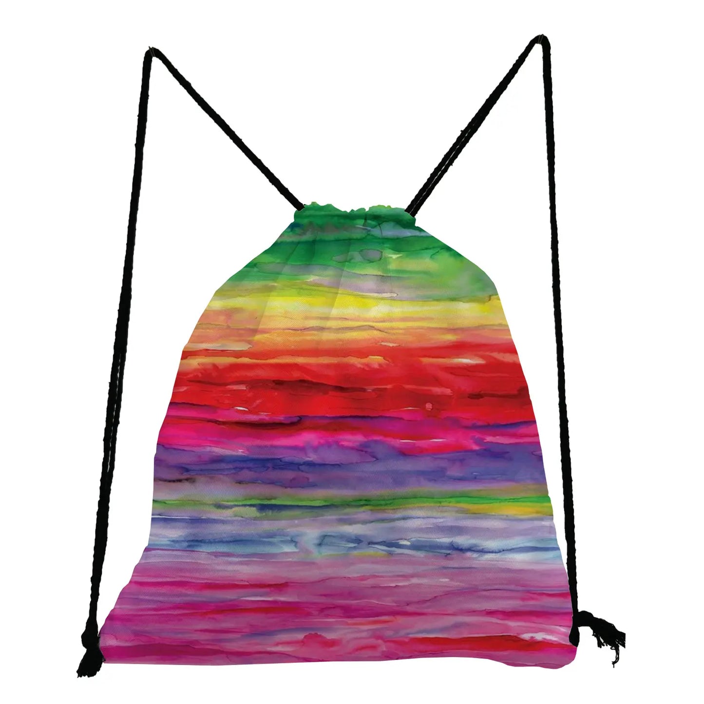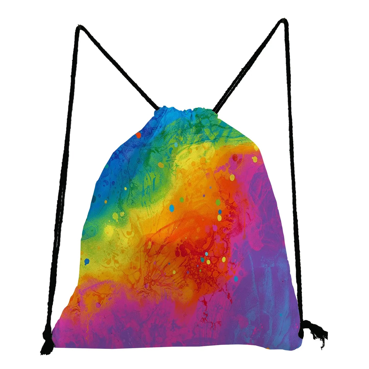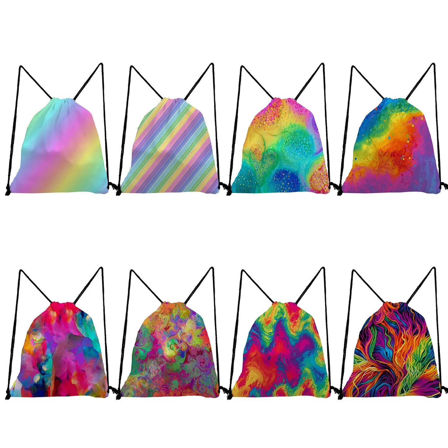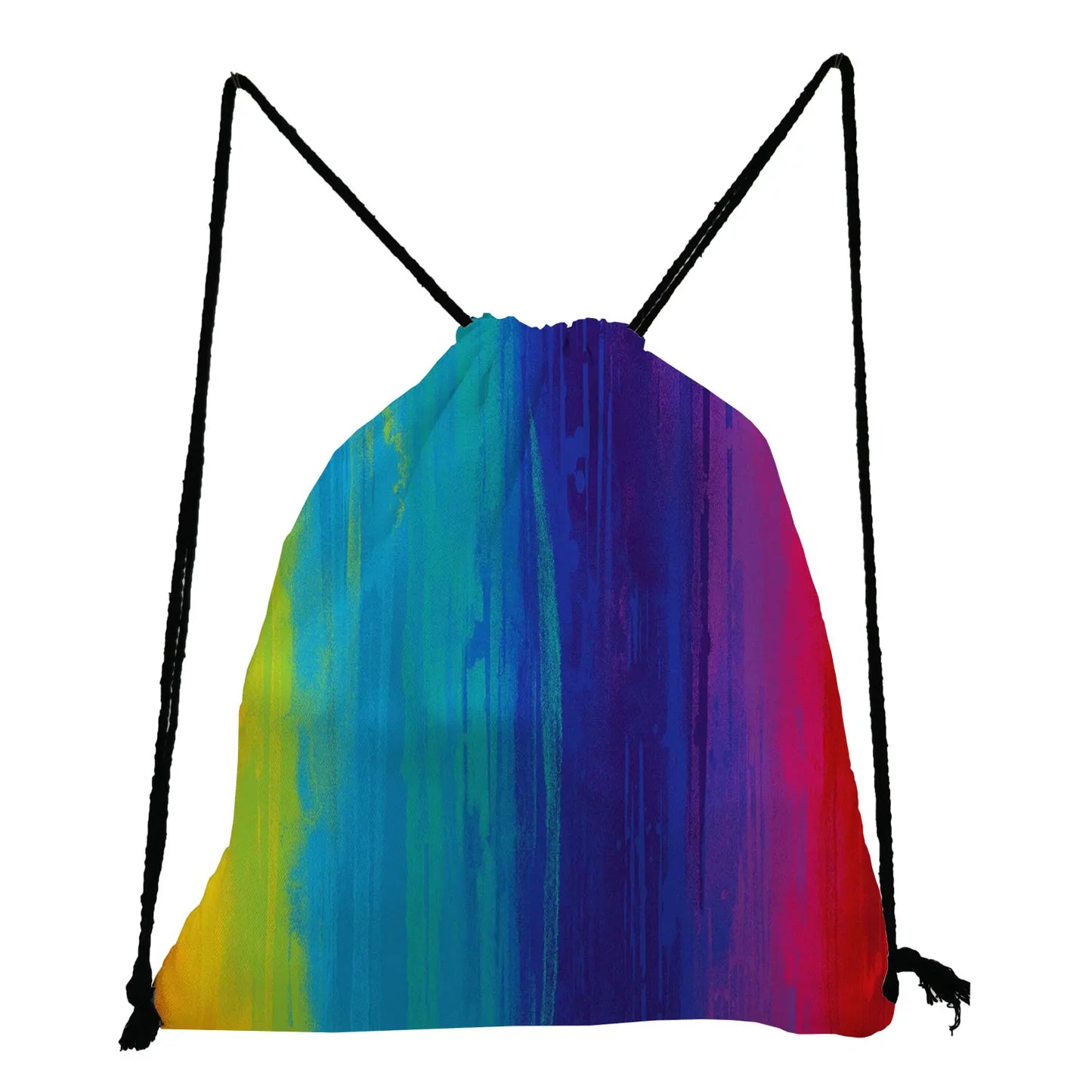 New Trend Colorful Fashion Print Backpacks For Students Rainbow Colors Art Creativity Women Drawstring Pocket Notebook Shoes Bag