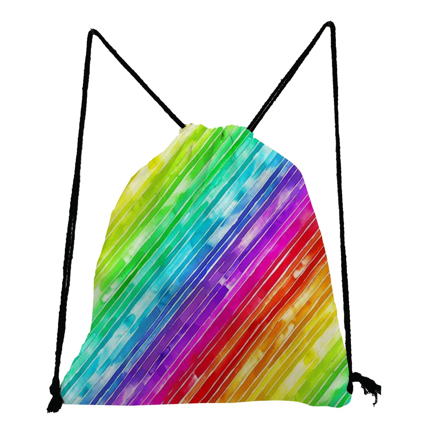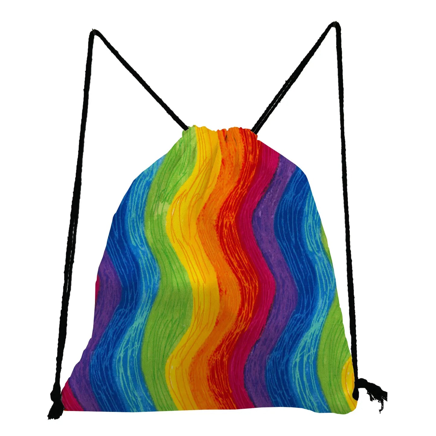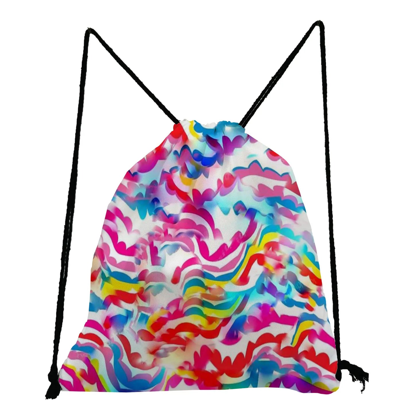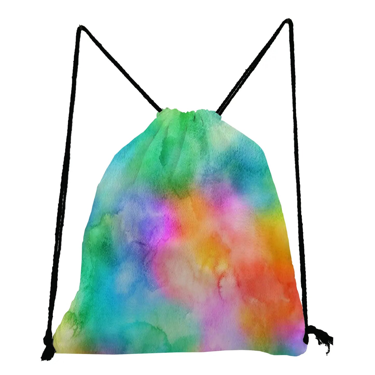 New Trend Colorful Fashion Print Backpacks For Students Rainbow Colors Art Creativity Women Drawstring Pocket Notebook Shoes Bag