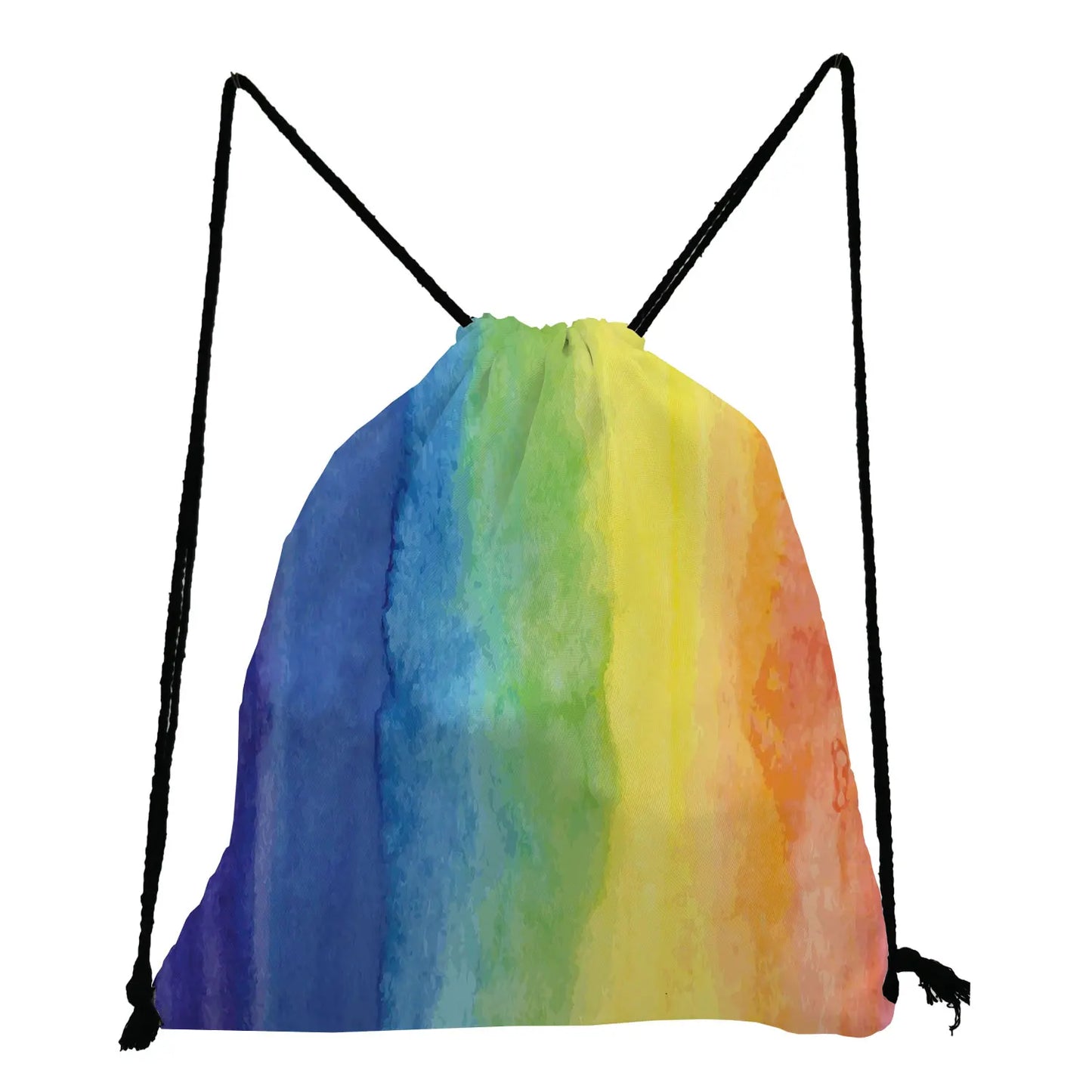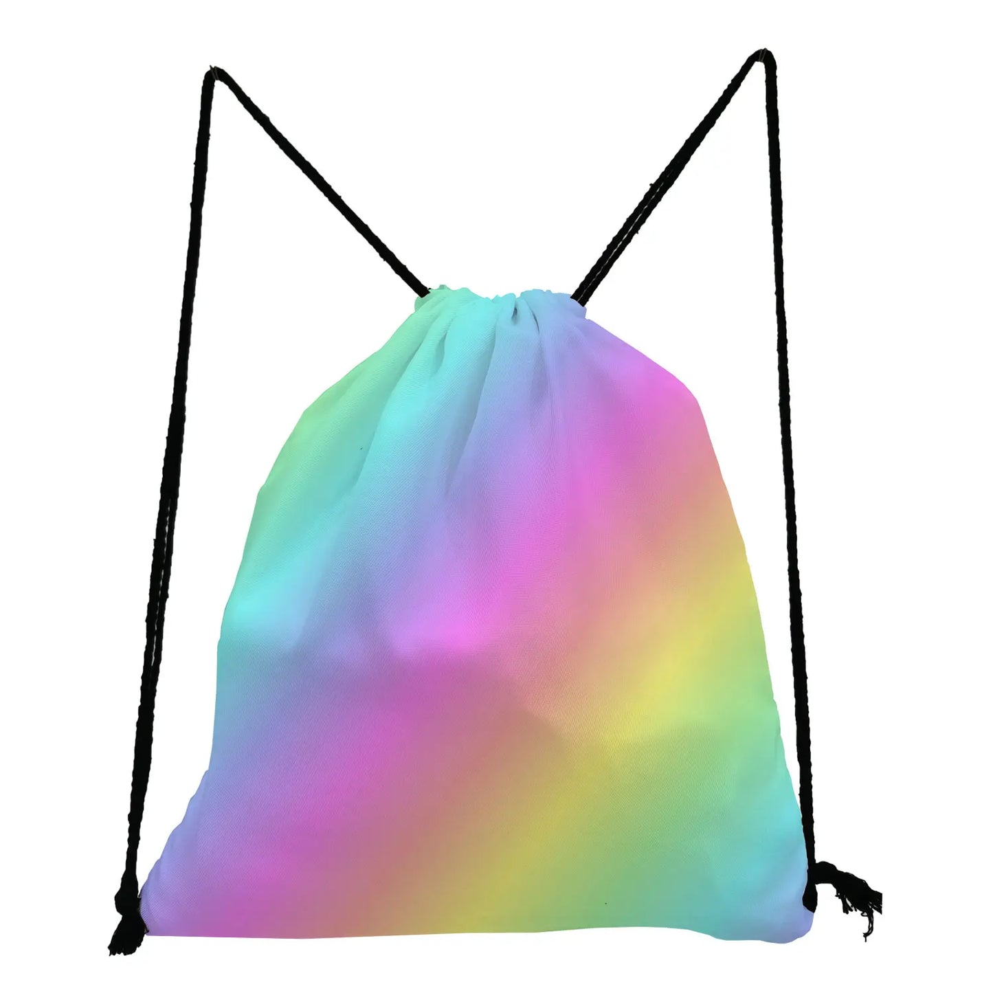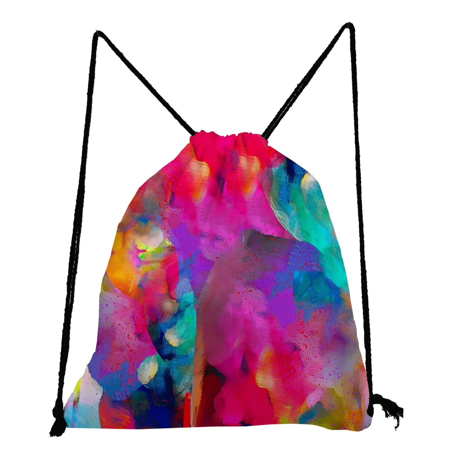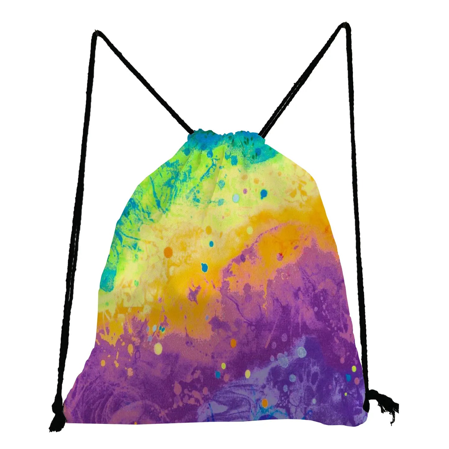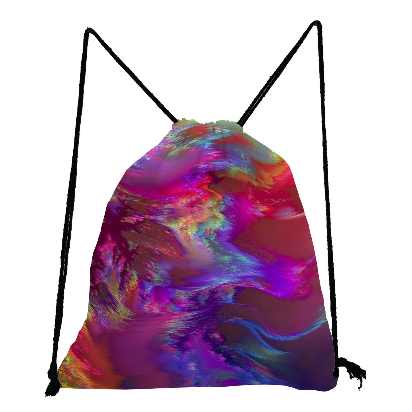 New Trend Colorful Fashion Print Backpacks For Students Rainbow Colors Art Creativity Women Drawstring Pocket Notebook Shoes Bag