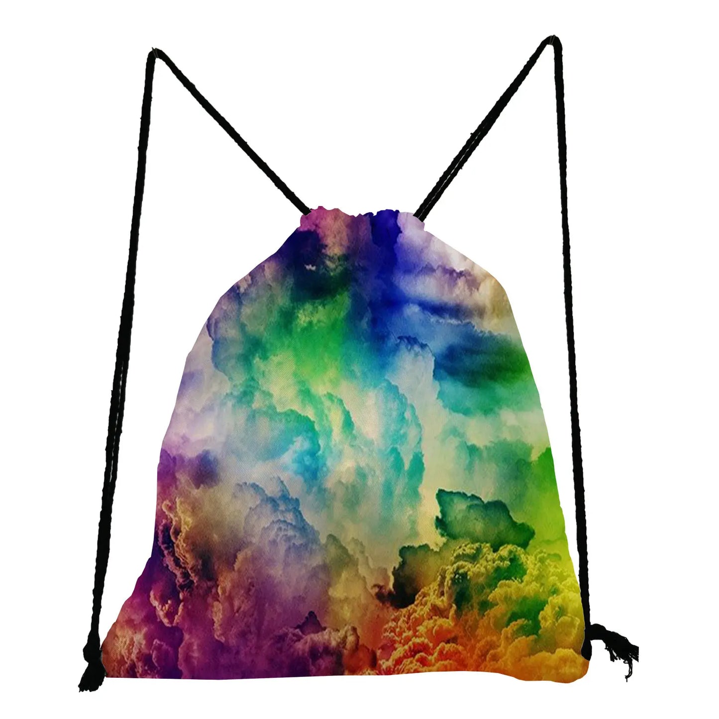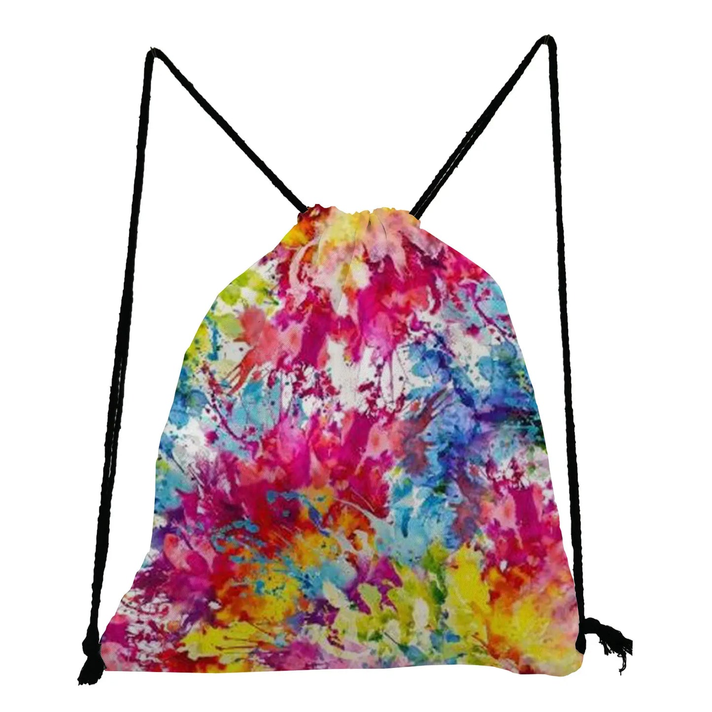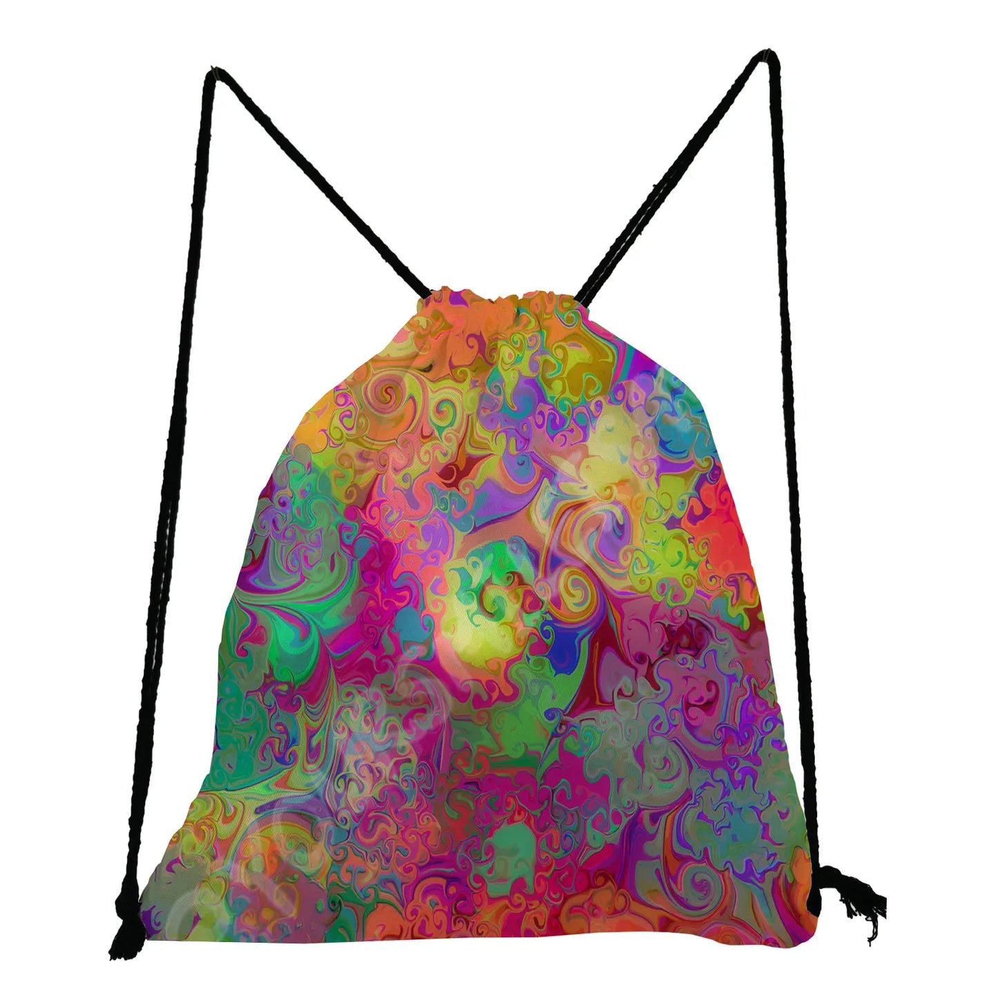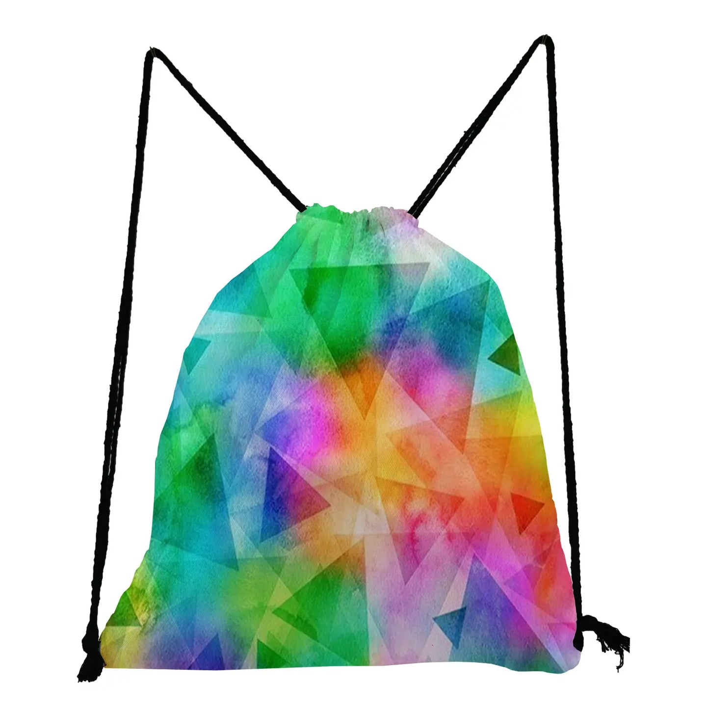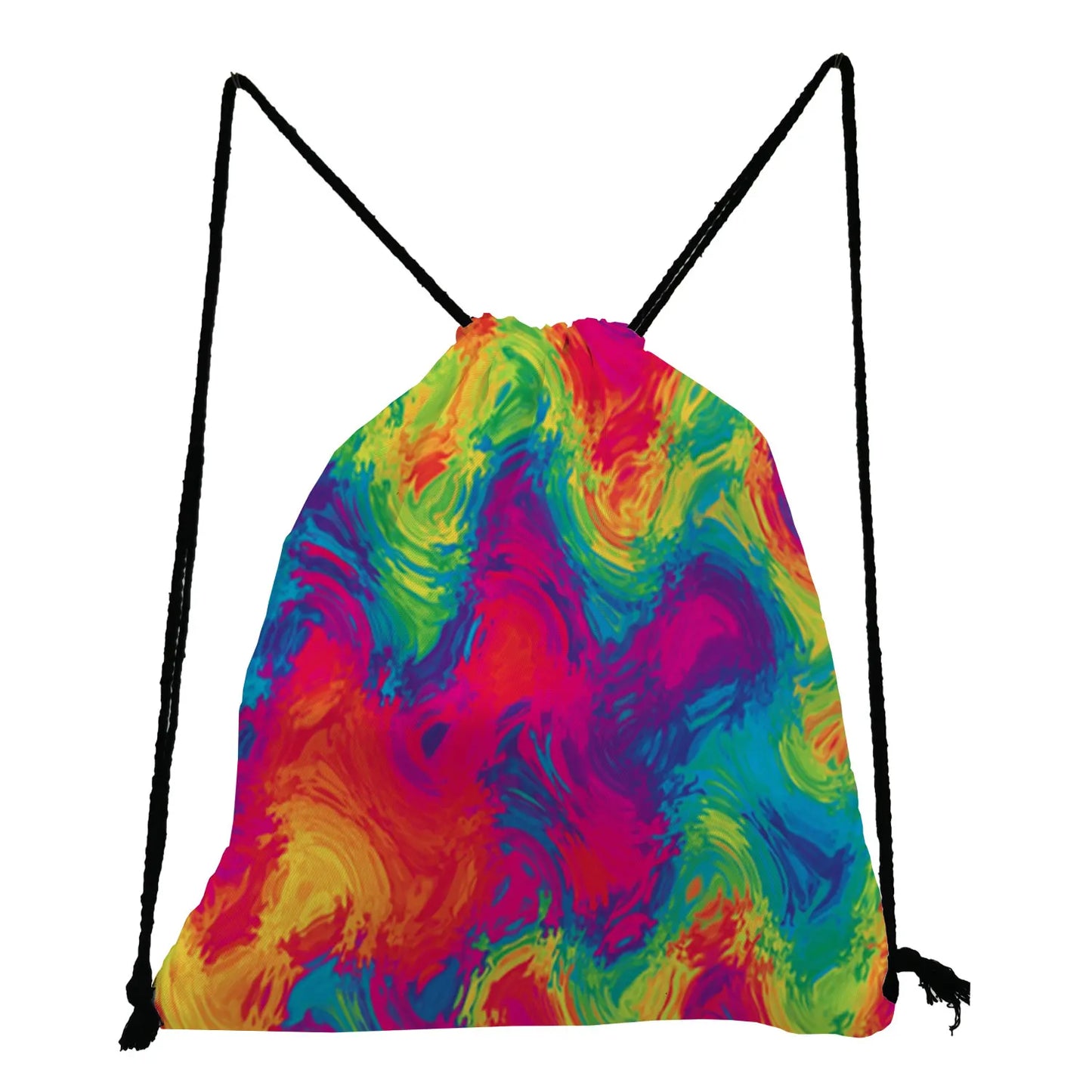 New Trend Colorful Fashion Print Backpacks For Students Rainbow Colors Art Creativity Women Drawstring Pocket Notebook Shoes Bag